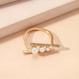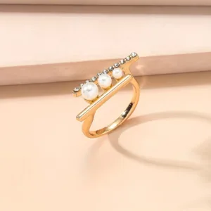 1pc Elegant Adjustable Open Ring with Imitation Pearl & Rhinestone Accents – Chic Irregular Design, Golden-Tone Zinc Alloy, Perfect for Daily Wear & Gifting