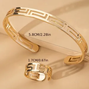 Chic Adjustable Open Ring & Bangle Set – Iron, Perfect for Casual Attire or Gifting