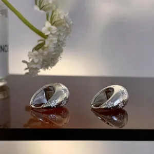 New Design Earrings For Women With Exaggerated European And American Style, Featuring High-quality Silver Spherical Eight-pointed Star Zirconia Ear Studs.
