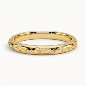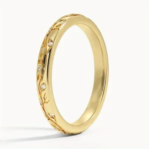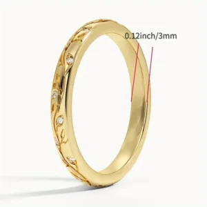 Elegant Golden-Tone Ring with Intricate Leaf and Vine Carvings, Embellished with Sparkling Cubic Zirconia – Sophisticated Minimalist Style, Ideal for Daily Wear or Gifting