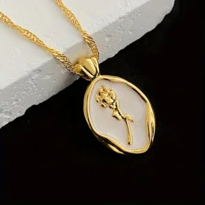 1Pcs Women’s Fashion Rose Oval Pendant Jewelry Light Luxury Niche Wedding Bride Jewelry Gift