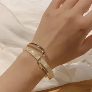 1pc Simple Niche Design Geometric Glossy Irregular Open Bangle Bracelet Simple Hand Bangle