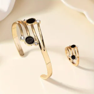 Trendy Minimalist Style Crossed Jewelry Set, Round Shaped Bohemian Style Zinc Alloy Synthetic Gems Decor Jewelry Accessories For Daily And Vacation Wearing